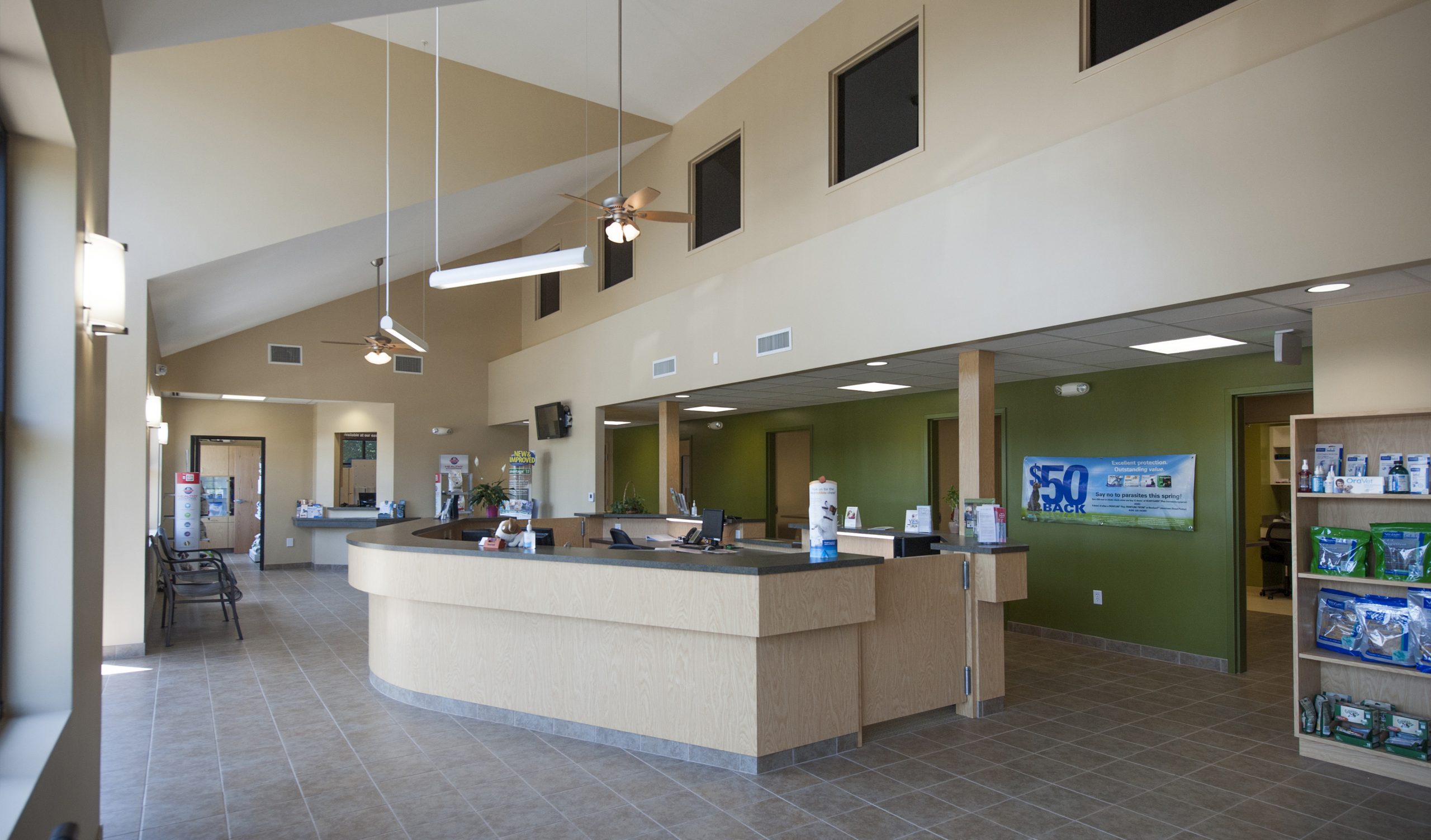 Phase I, completed in 2014, included constructing a open concept spacious reception area and lobby which incorporates a retail area for product sales. The hospital contains a walk up pharmacy and kennel hall flanking the reception area. The kennel hall is equipped for dog and cat boarding with grooming services and currently includes 5 dog runs. Four exam rooms, one of them being “Cat Only,” transitions pets comfortably from the waiting area to the Surgery/Treatment Hall through dual access doors for a variety of procedures. This area includes isolation sections, recovery wards, radiology services, and a records area for staff.